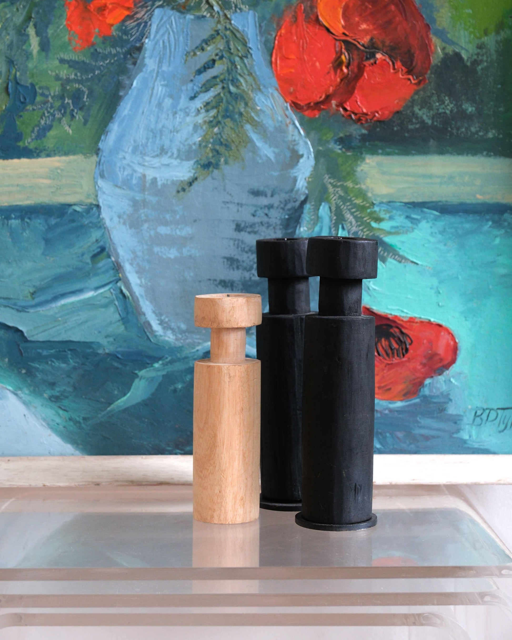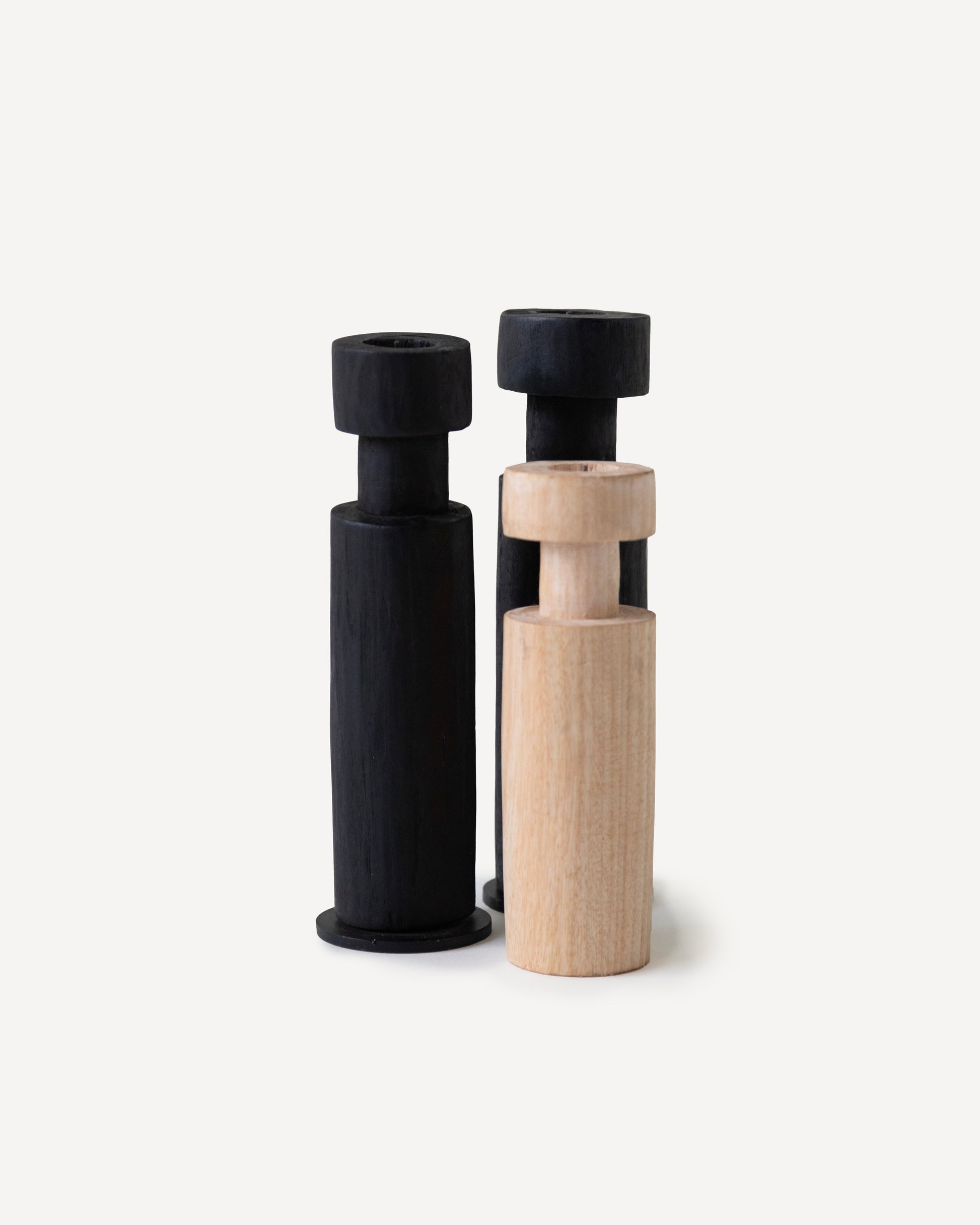 Hand-carved wooden candlestick made in Zimbabwe from Jacaranda wood and features a heavy metal base for extra stability.