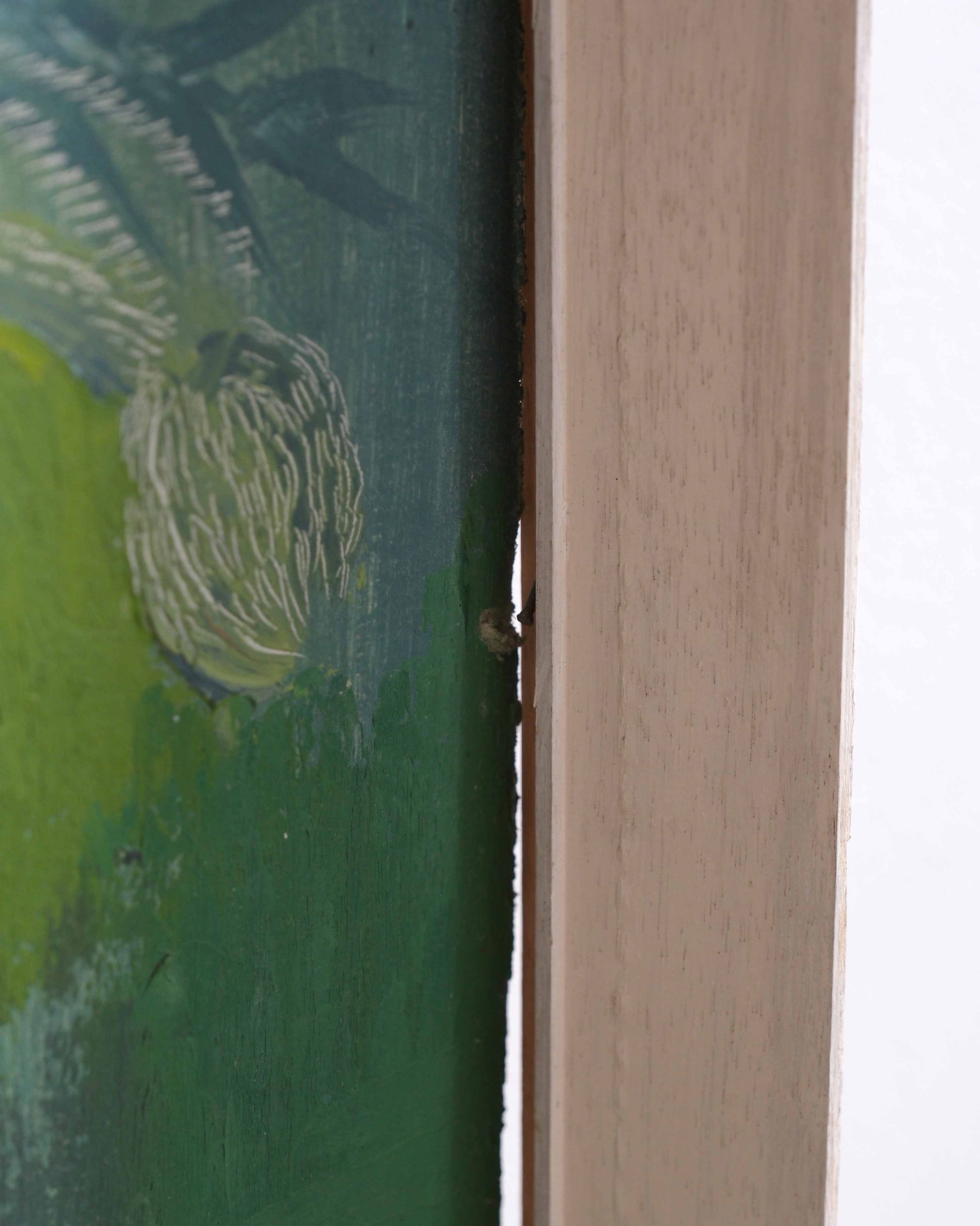 CONDITION: FRAME IS WORN AND DAMAGE TO EDGE OF BOARD FROM NAIL. PLEASE SEE IMAGERY