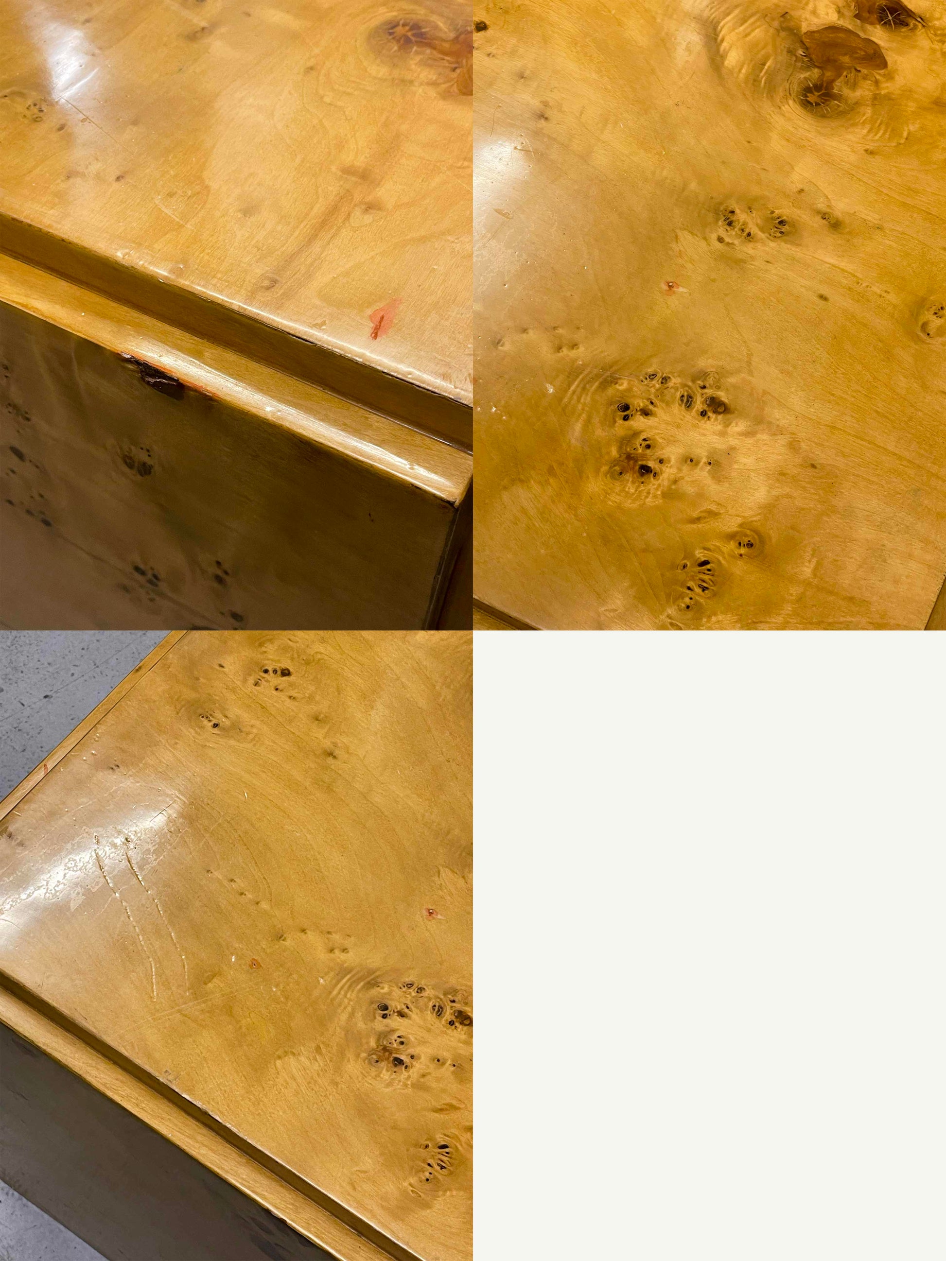 CONDITION: SOME SCRATCHING VISIBLE AND RED MARKINGS APPEARING ON THE BURL VENEER (PLEASE SEE FINAL IMAGE)