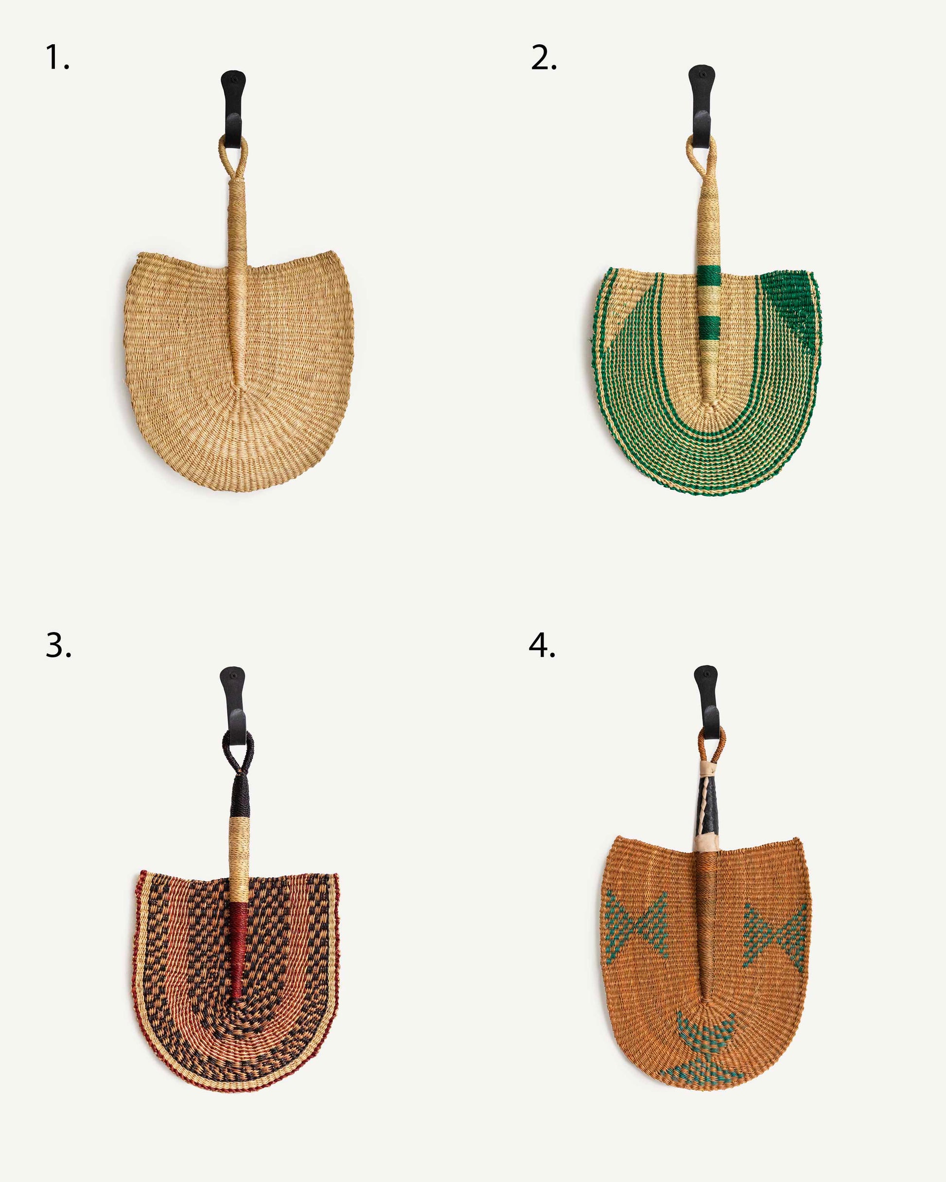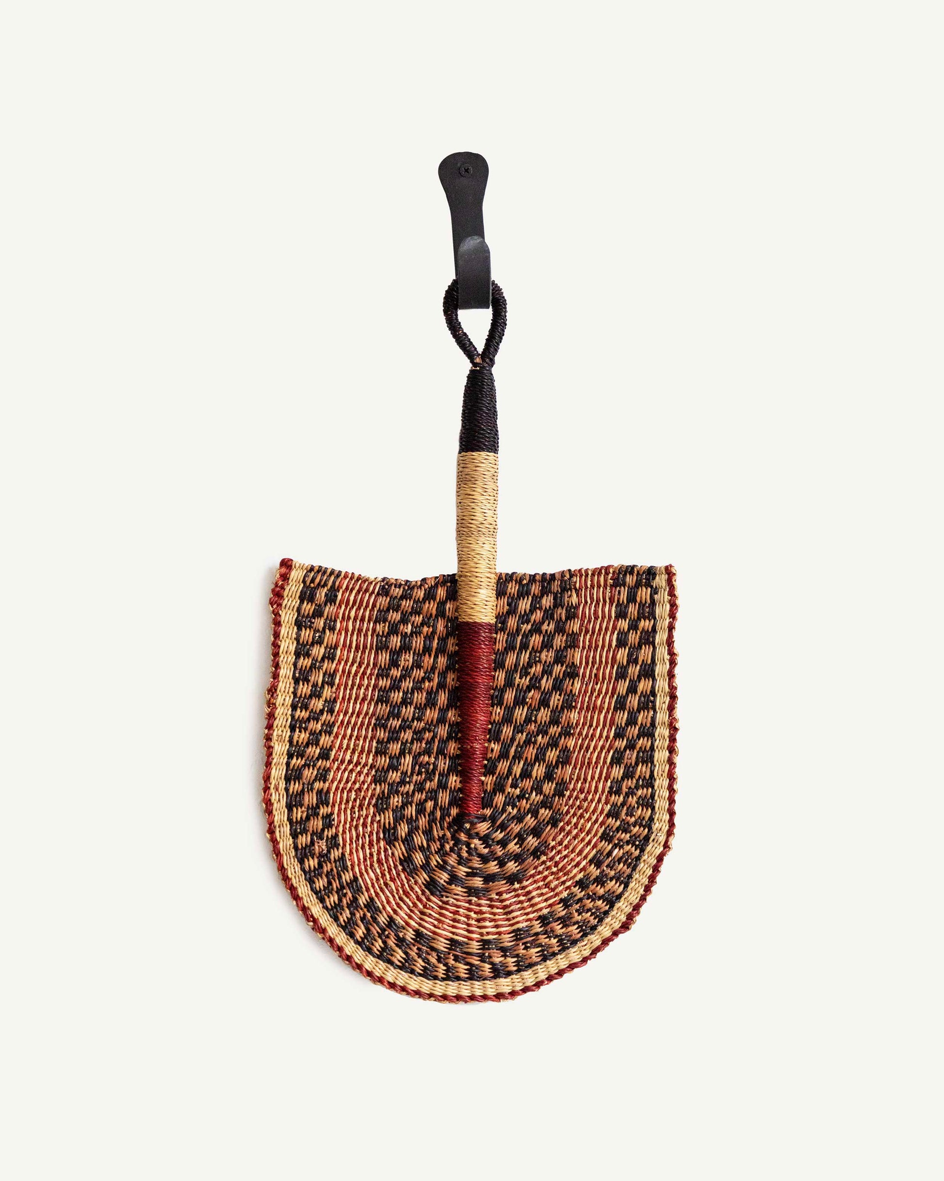 Hand-woven in Ghana by skilled craftsmen and women, the Bolga Fans are a traditional and eco-friendly accessory made from dried elephant grass with non-toxic fabrics and natural dyes. Traditionally used as a fan on hot summer occasions in Ghanaian culture, these multifunctional fans feature a loop handle for easy hanging and are a beautiful combination of art and fashion.